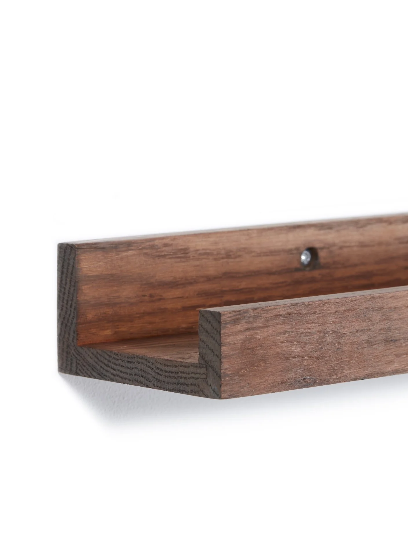 Our lightweight and FSC certified dark oak floating shelves are designed in Montreal and sustainably sourced. These sleek picture ledges are an easy, minimalist way to display your favourite art, precious family photos and small meaningful objects. Hang several shelves in a row to create a longer one or integrate a smaller shelf in your gallery wall, the possibilities are endless!